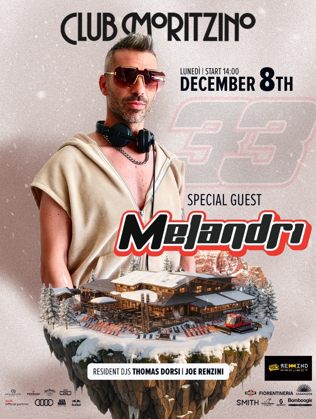 Der Rhythmus und die Energie von Melandri kommen in den Club Moritzino und sorgen für ein kraftvolles Après-Ski. Ein Mix aus Tech-House-Sounds, elektronischen Klängen...
