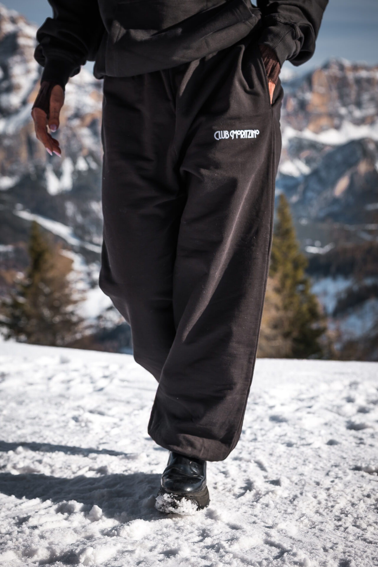 Pantaloni baggy unisex extra oversize, balloon fit, color nero, in tessuto 100% cotone 450 gr French terry, con stampa logo iconico. Un fit veramente relaxed, per un look urban moderno e pieno di comfort. Produzione Made in Italy a tiratura limitata.